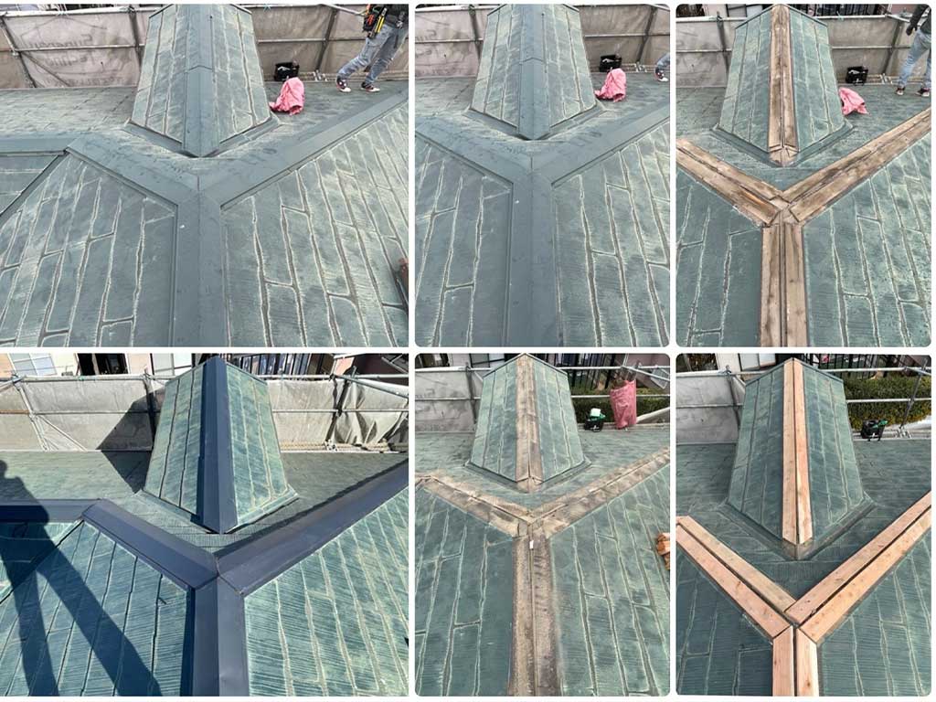 今回の工事では、既存の棟板金を撤去し、下地の貫板も新しいものに交換しました。